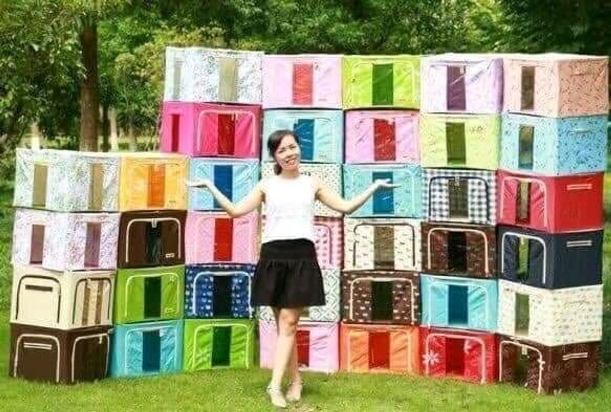 CÓ THỂ XẾP CHỒNG LÊN NHAU NHƯ MỘT CHIẾC TỦ NHIỀU NGĂN màu ngẫu nhiên Túi chăn khung sắt cao cấp đa năng đựng đồ loại đại vừa giúp bạn tiết kiệm không gian, vừa là vật tô điểm cho ngôi nhà thêm đẹp mắt hay làm túi du lịch mang đi dã ngoại, picnic. Lớp bao bên ngoài được làm bằng vải poly dày chống thấm cao cấp, bên trong là khung sắt chắc chắn giúp tăng thêm độ bền. Thiết kế như một chiếc vali tiện dụng, nắp có khóa kéo chắc chắn, có thể dùng đựng rất nhiều đồ cho gia đình bạn như:chăn màn, quần áo, đồ lót, đồ chơi trẻ em... Mặt trước hộp được thiết kế thông minh với lớp poly trong cho bạn có thể dễ dàng tìm kiếm vật dụng cần thiết mà không cần phải mở hộp ra.
