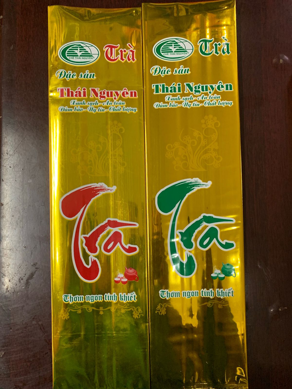 Mẫu túi trà Thái Nguyên in hoa văn, tỉ mỉ từng chi tiết, màu sắc đẹp và bắt mắt, chữ in rõ ràng
