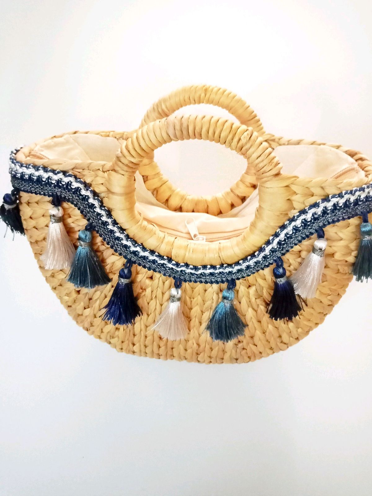túi cói bán nguyệt to gắn tua rua giá sỉ/bán buôn