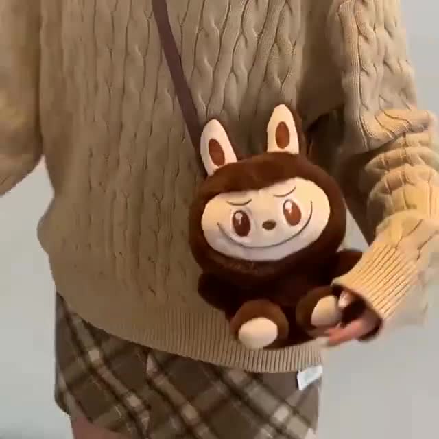 Túi đeo chéo nhồi bông mềm mại, tạo hình hoạt hình phong cách Labubu dễ thương, kích thước gọn nhẹ, phù hợp cho bé hoặc người yêu thích phụ kiện đáng yêu.