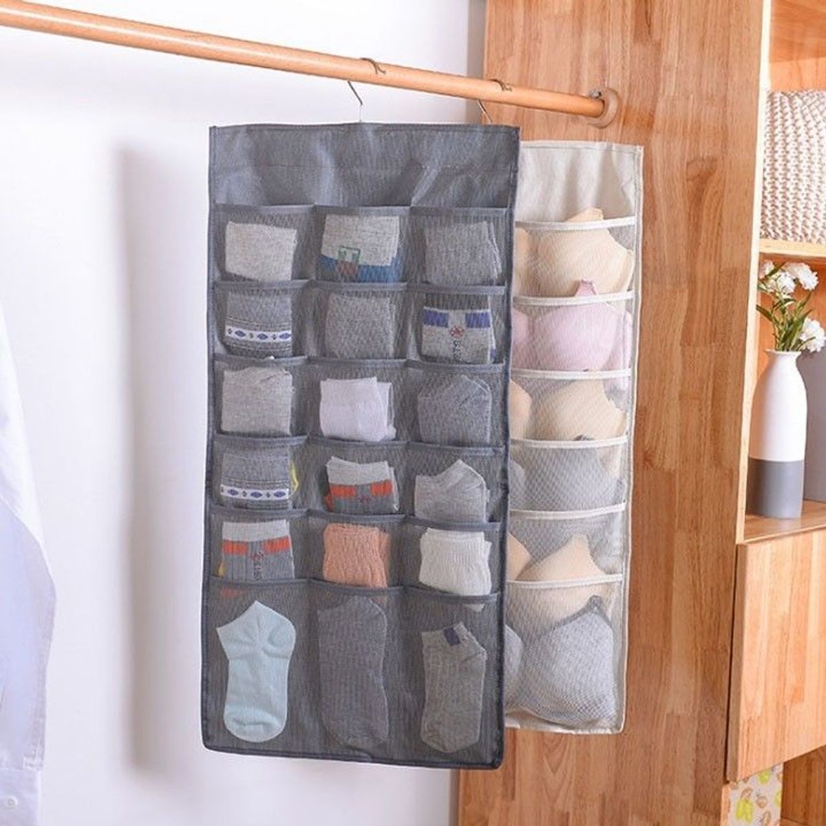 Túi đựng đồ lót 30 ô 2 mặt, có móc xoay 360 độ - tặng kèm 1 túi giấy thơm tủ quần áo
