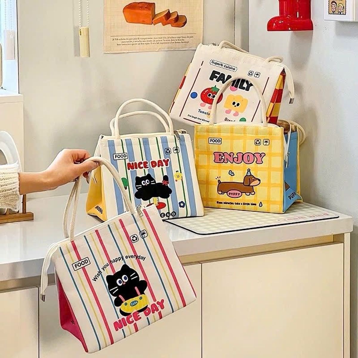 Túi giũ nhiệt,Túi đựng bảo quản đồ ăn mang đi làm đi học tiện lợi họa tiết hoạt hình dễ thương
