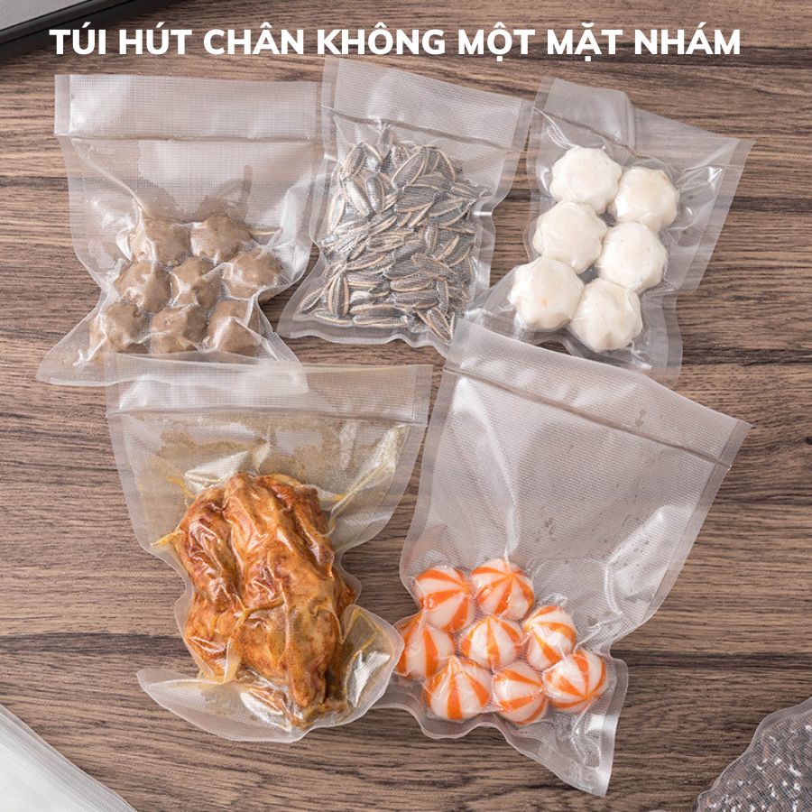 - Túi PA/PE hút chân không một mặt nhám là các túi dùng để bảo quản thực phẩm bên trong và được xử lý theo công nghệ rút chân không bằng máy hút chân không chuyên dụng. Sau khi hút hết không khí,máy hút chân không có tác dụng hàn kín mép túi để không khí không bị tràn vào túi. Nhằm đảm bảo thời gian sử dụng của sản phẩm được lâu hơn, giữ được chất lượng nguyên thủy của sản phẩm bên trong, không bị không khí môi trường làm ảnh hưởng tới chất lượng sản phẩm, thực phẩm.