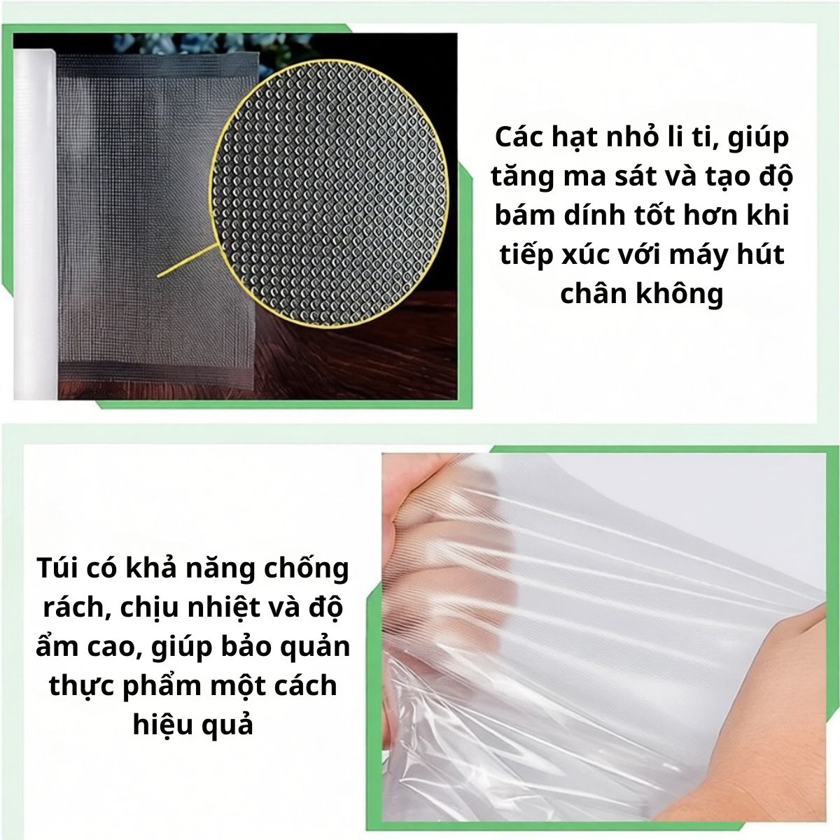 - Kết hợp với mối hàn của máy hút chân không với độ dính cao, không gây hở túi