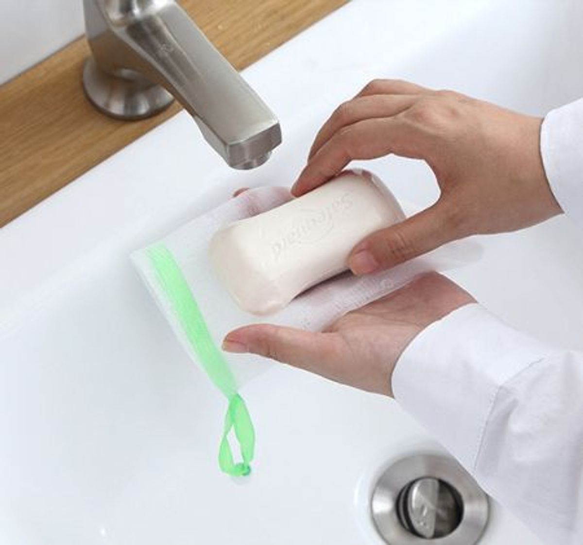 - Cho bánh xà phòng vào trong túi lưới.