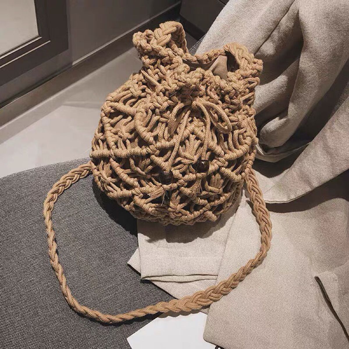 Túi Móc Rỏ Cua Thắt Miệng Hạt Gỗ Xinh Xinh