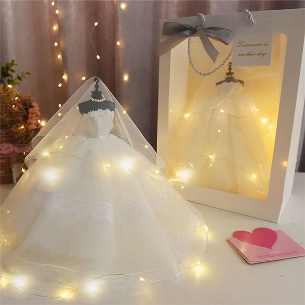 - Mô hình váy cưới basic bao gồm: váy cưới, ma nơ canh, vòng cổ, rèm trùm đầu cô dâu + Túi xách tay 1 mặt kính + dây đèn led