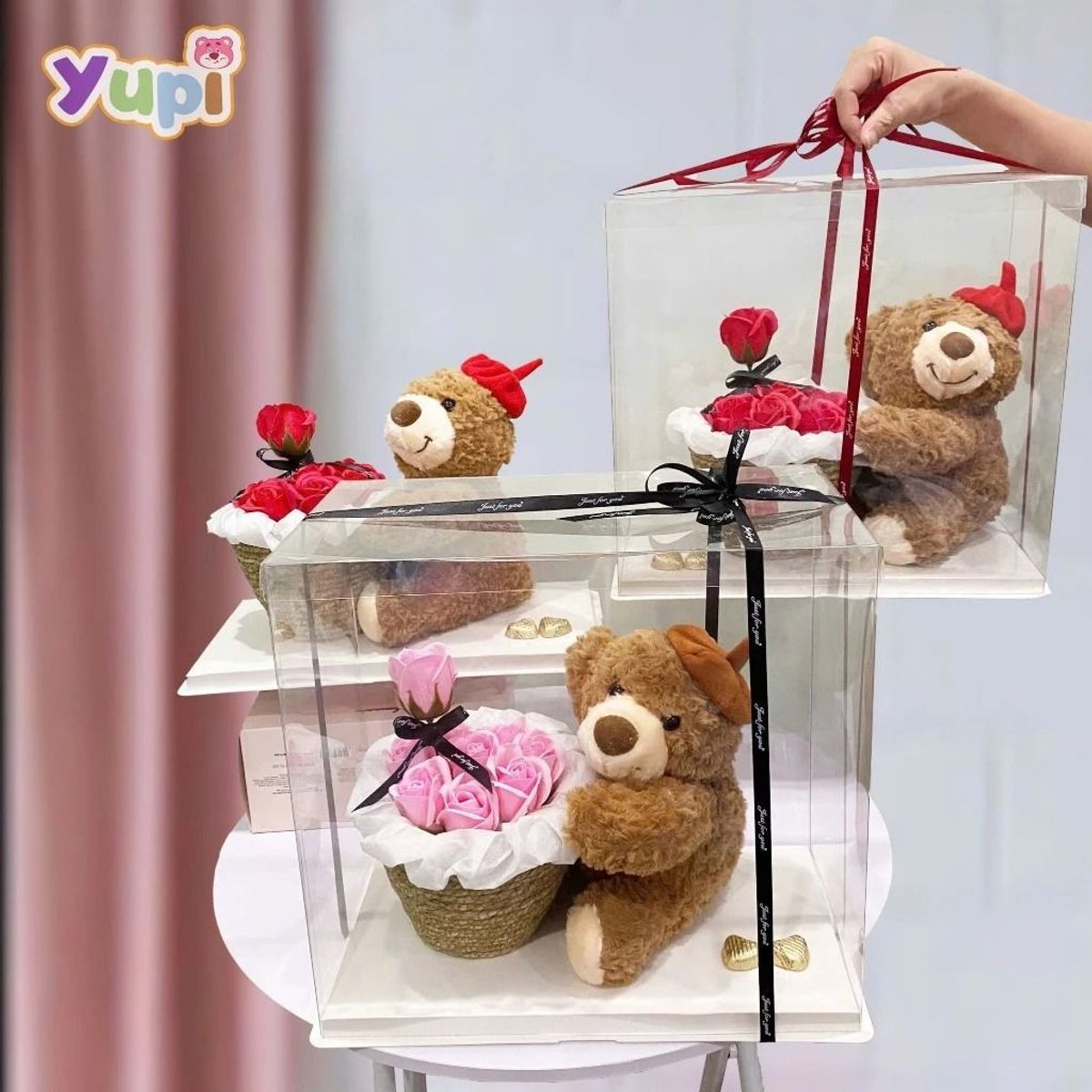 Túi set quà Gấu Bông, Hoa hộp nhựa trong giá sỉ/bán buôn