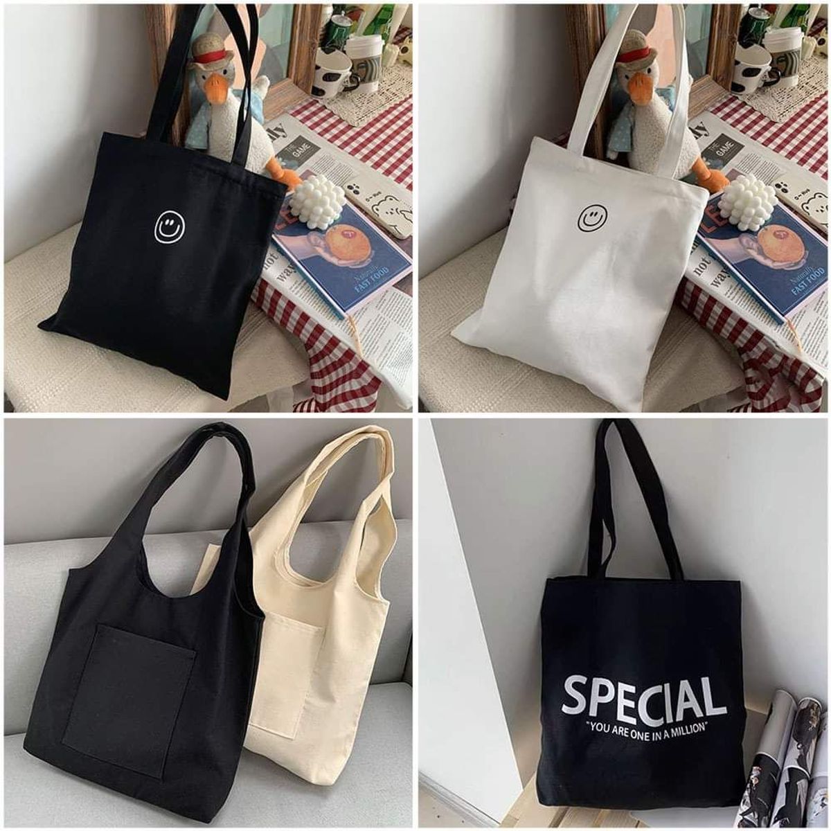- Với chiếc túi tote họa tiết dễ thương, bạn hoàn toàn có thể tự tin lựa chọn làm phụ kiện để đi học, đi chơi, du lịch, công tác, …