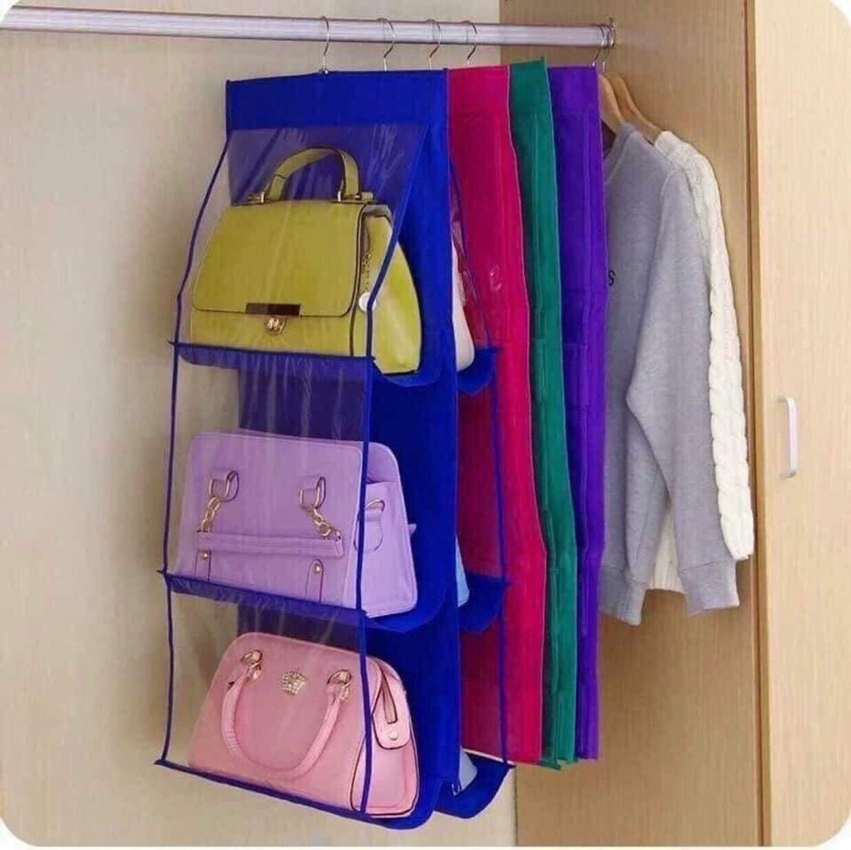 TÚI TREO BẢO QUẢN TÚI XÁCH CHỐNG BỤI 6 NGĂN 3 TẦNG TIỆN LỢI(GIỎ XÁCH) giá sỉ - giá bán buôn