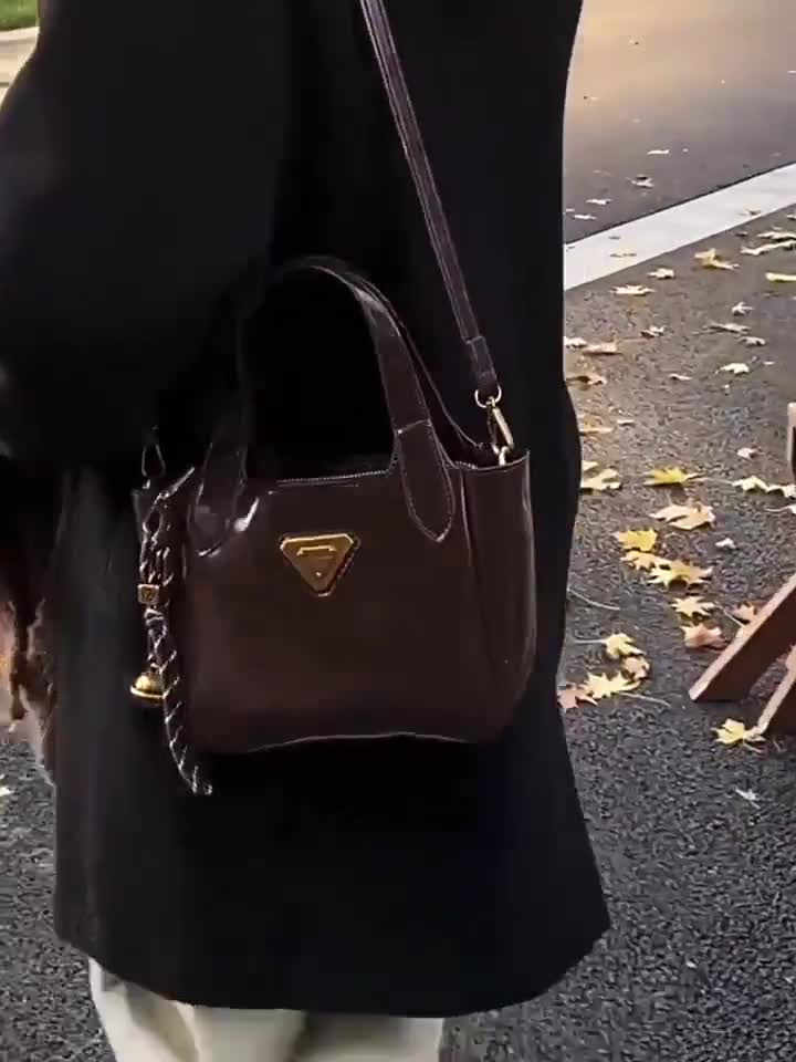 Thiết kế hiện đại, da nhăn bóng bắt sáng nhẹ, kết hợp cùng móc treo dây chuông xinh xắn — tạo điểm nhấn tinh tế cho phong cách mỗi ngày 🌷