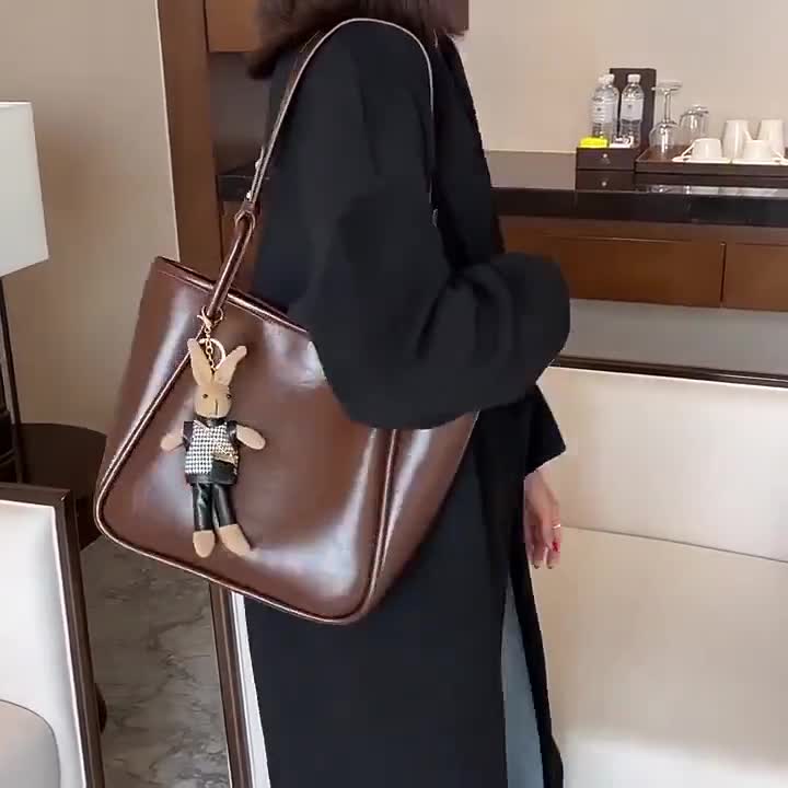 Điểm nhấn tinh tế đến từ móc treo thỏ bông xinh xắn, vừa tạo sự mềm mại vừa giúp túi thêm phần nổi bật.