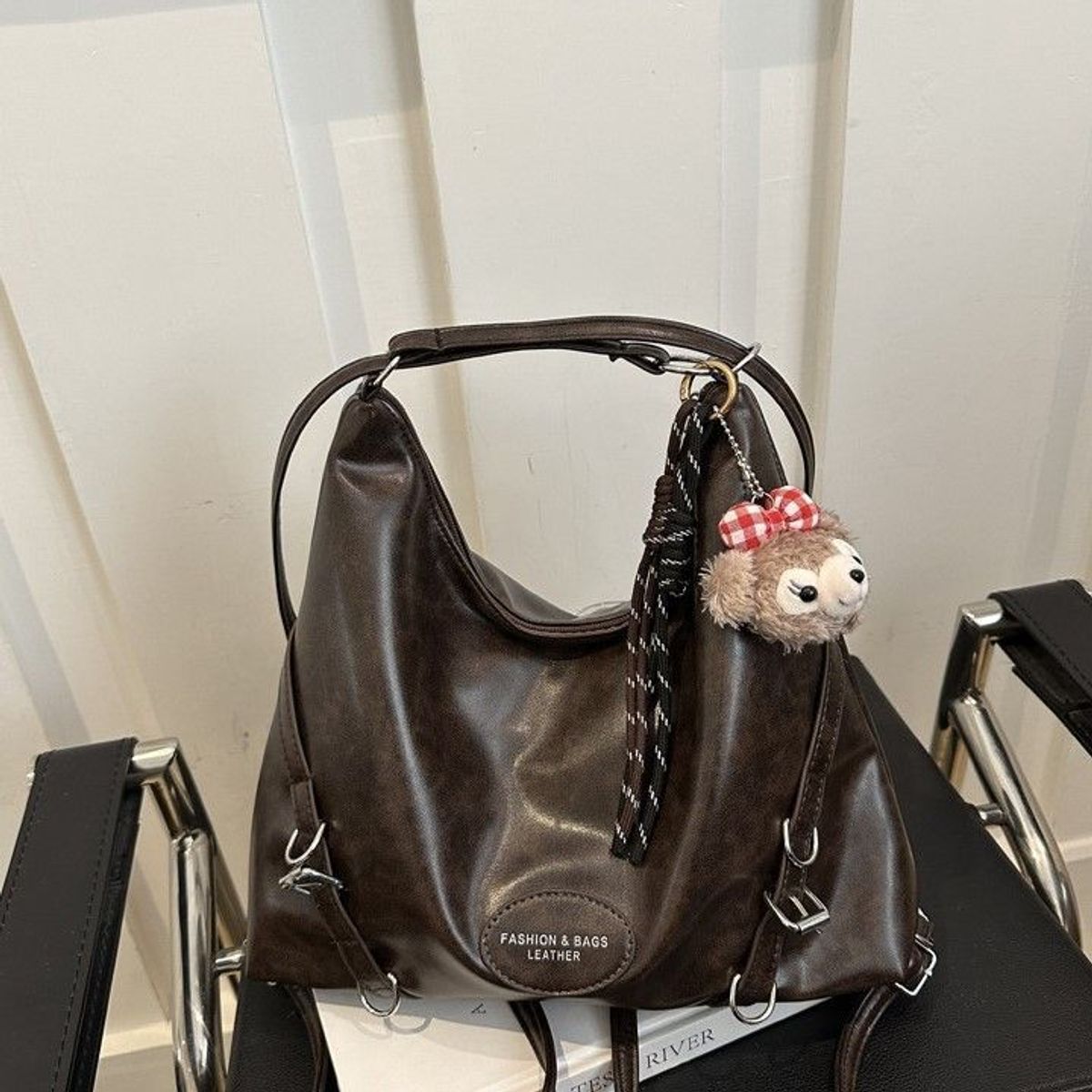 Túi xách nữ kẹp nách đeo chéo ca tính da bóng mờ kết hợp thành balo kèm móc khóa gấu K683 giá sỉ - giá bán buôn
