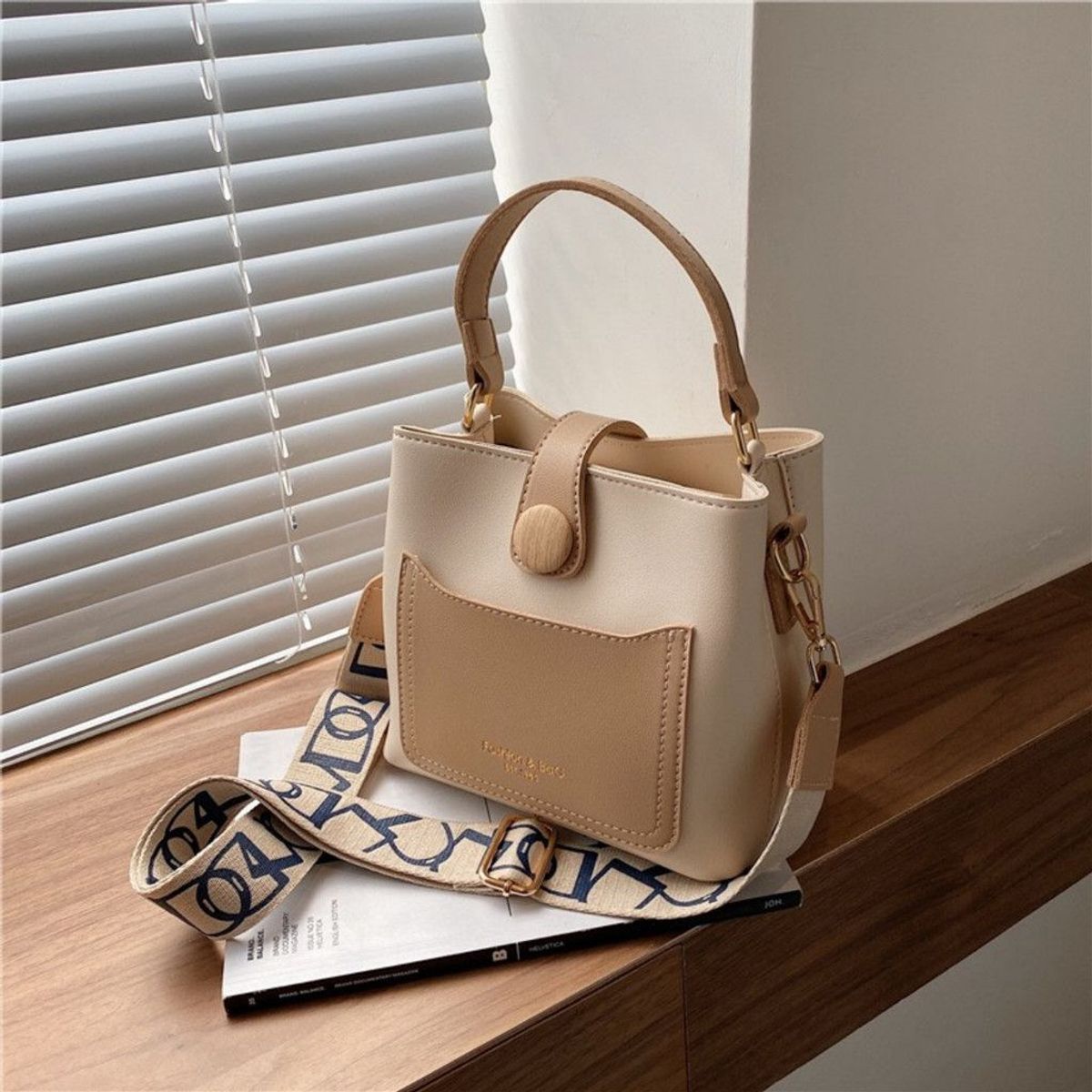 Túi xách nữ kẹp nách đeo chéo cúc chậu dây bản to K43