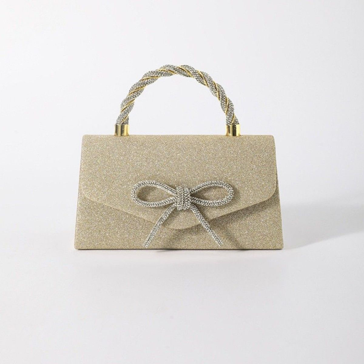 Túi xách nữ kẹp nách đeo chéo da kim tuyến đính nơ quai xách tròn cứng K668 giá sỉ - giá bán buôn