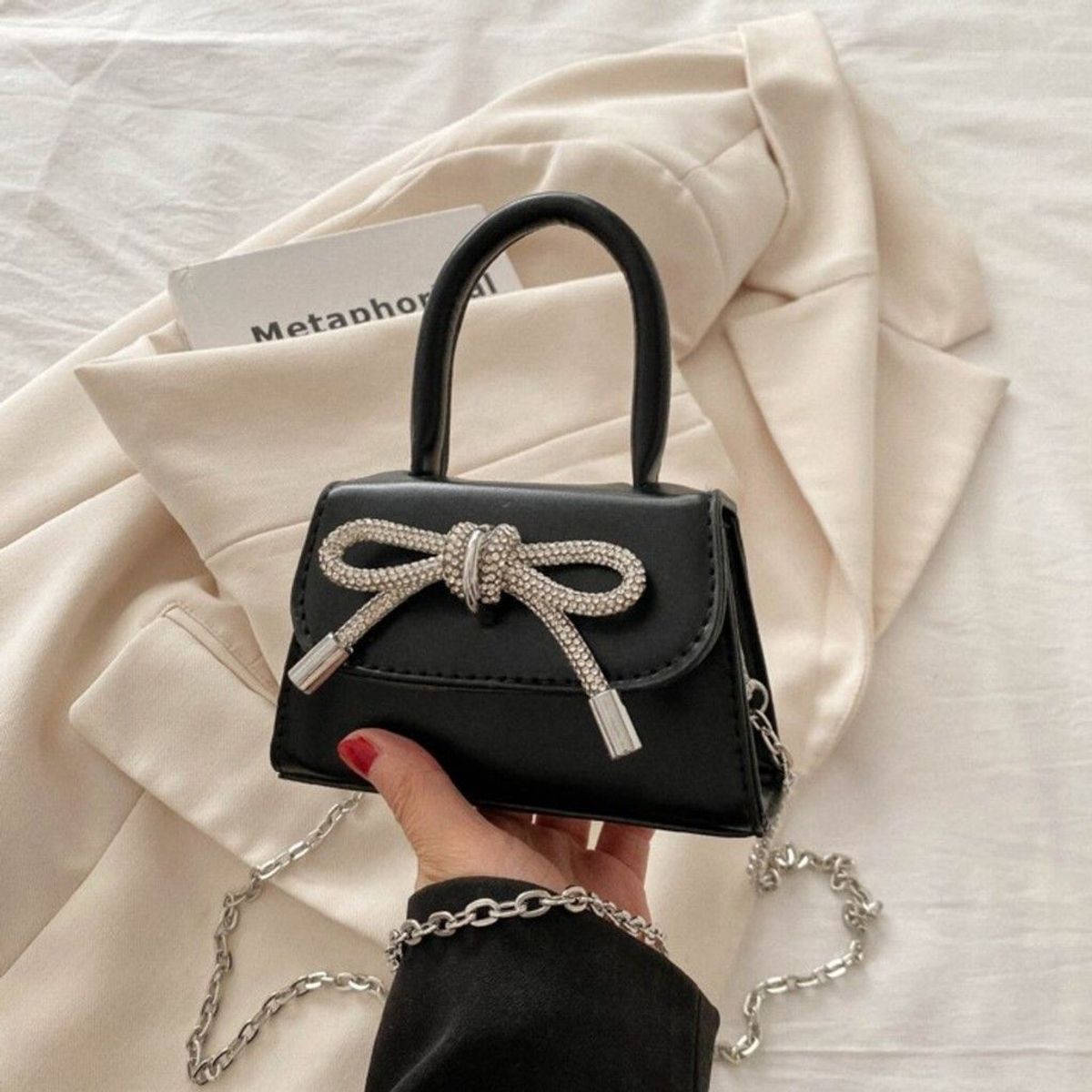 Túi xách nữ kẹp nách đeo chéo da trơn gắn nơ kim tuyến có quai xách K301