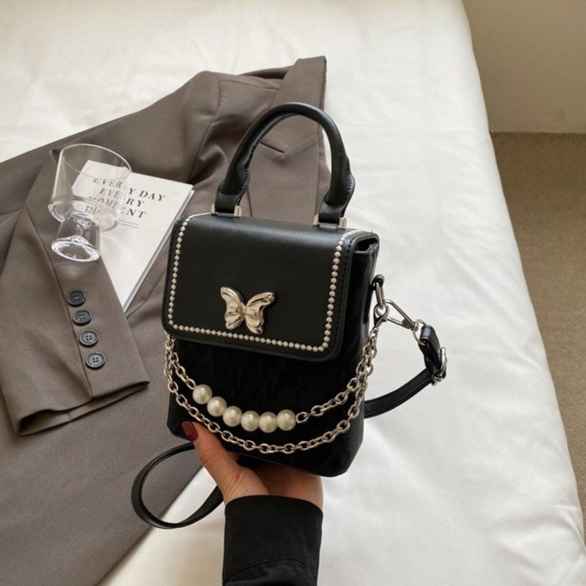 Túi xách nữ kẹp nách đeo chéo đựng điện thoại da nhung dây ngọc gắn mác bươm bạc K644 giá sỉ - giá bán buôn