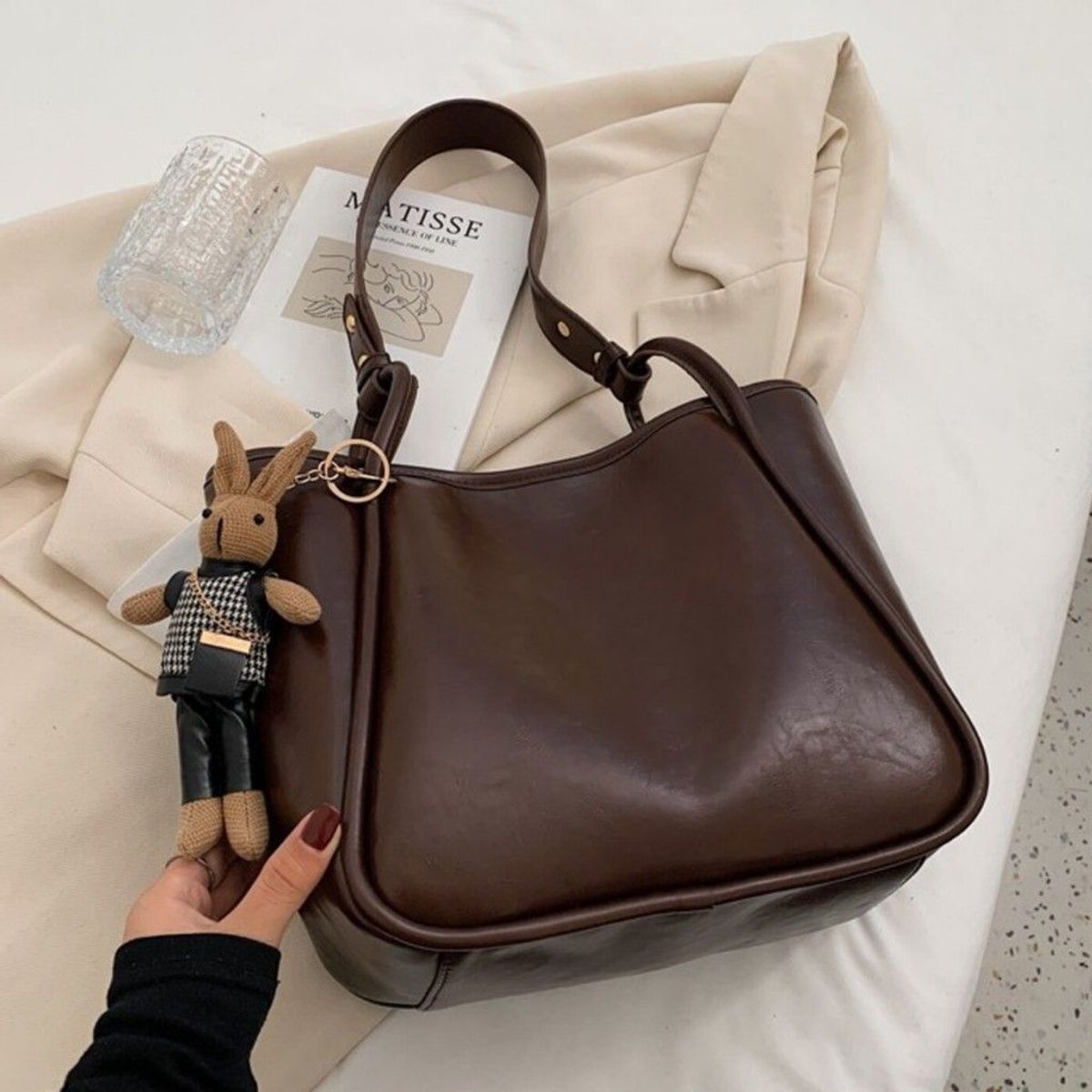 Túi xách nữ, túi công sở xách tay, kẹp nách da nhăn dầy dặn tặng kèm thỏ bông treo K620