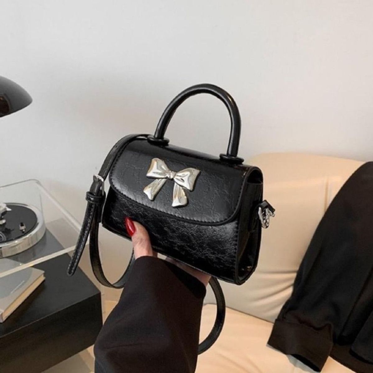 Túi xách nữ, túi đeo chéo 1 quai da nhăn bóng đính nơ bạc K442