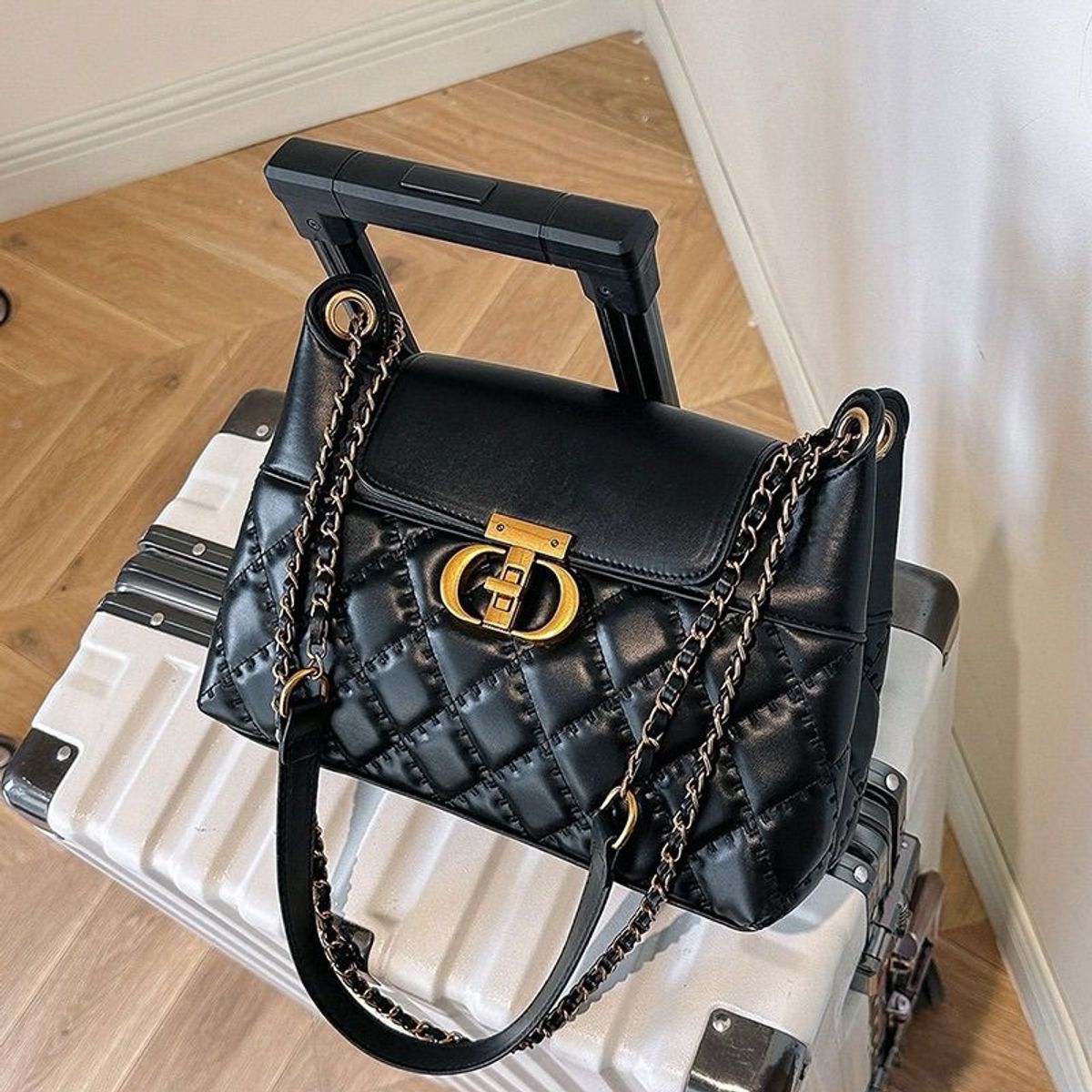 Túi xách nữ, túi đeo chéo chần chỉ tai gập khóa CD K507