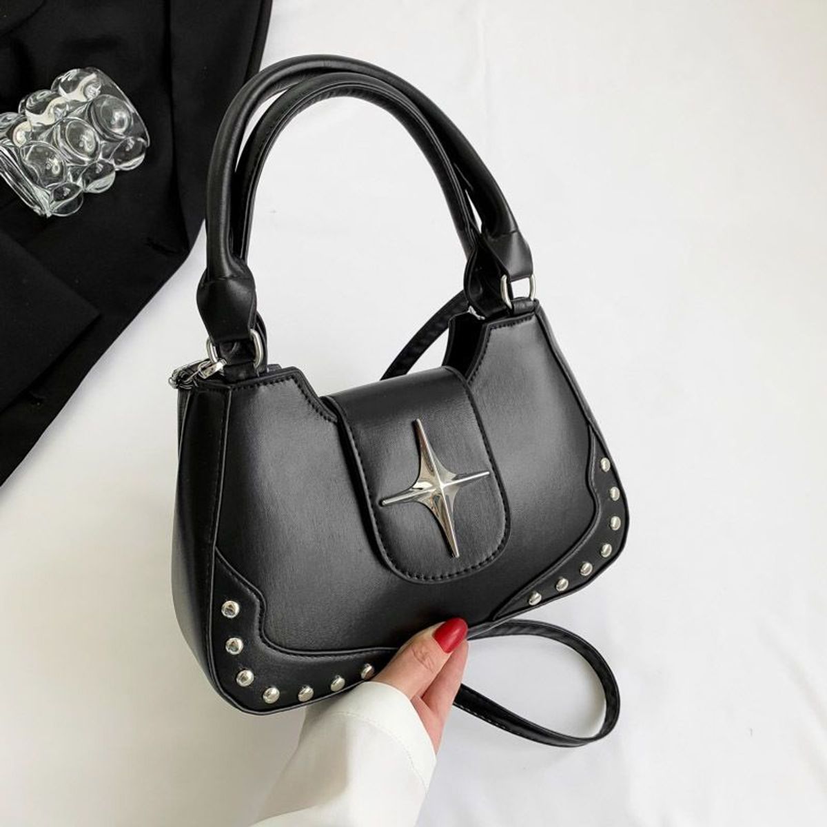 Túi xách nữ, túi đeo chéo hai quai xách da trơn gắn đinh kèm ngôi sao tặng kèm dây đeo chéo K501