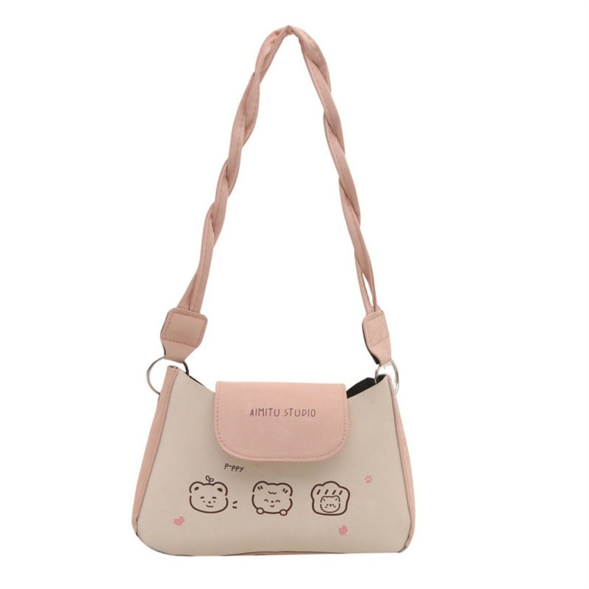 Túi xách nữ, túi kẹp nách, đeo vai da PU nhung lỳ họa tiết dễ thương, quai xoắn K751