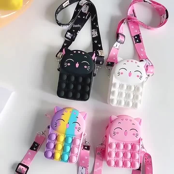 Chiếc túi xách silicon popit họa tiết búp bê đáng yêu, thiết kế nhỏ gọn, kèm dây đeo chéo tiện lợi, phù hợp cho bé mang theo khi đi chơi, dạo phố hay dịp lễ.