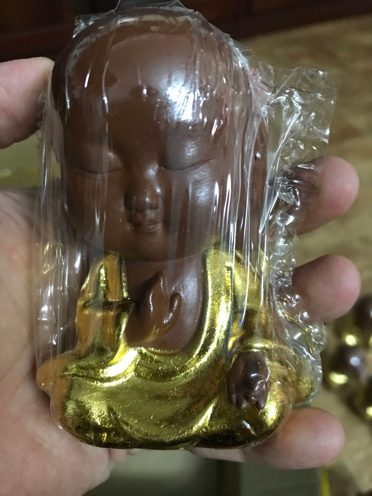Tượng chú tieu (thien dinh) cao 10cm bang đất Tử Sa dát vàng