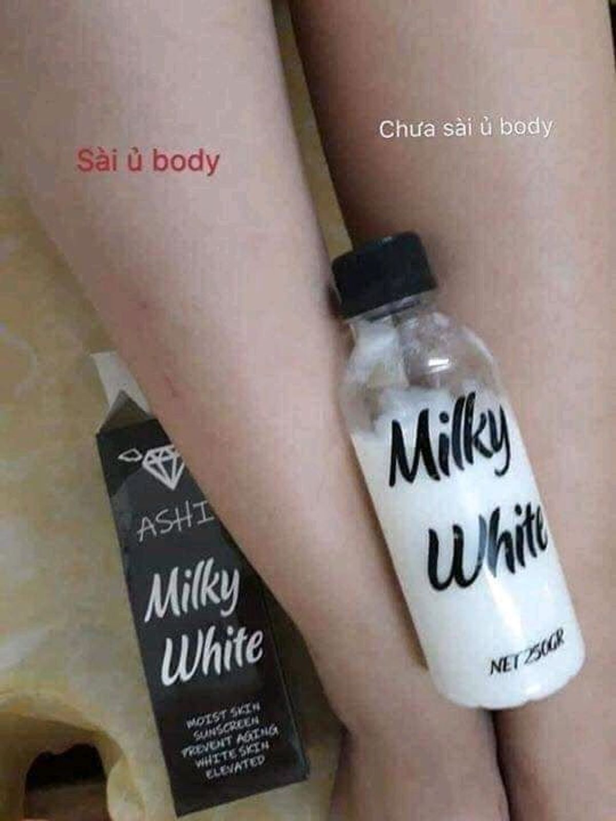 Giúp da chai lì, đen lâu năm xài kem j vẫn kg trắng Đừng ủ body Milky white Ashi ủ qua đêm 1 tuần 2_3 lần sẽ giúp cho da cải thiện,dù có đen hay chai lì đến đâu vẫn có thể bật tong trắng mịn thời gian xài đc 3_4thang đặt biệt khi mua sản phẩm công ty sẽ kèm 1 tắm trắng và quà cho khách