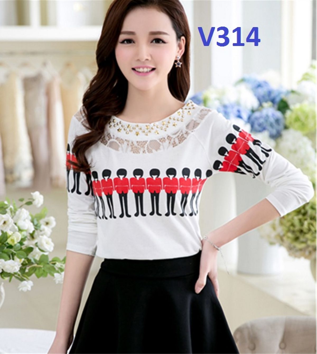 V314 - áo thun phối ren đính hạt - size m giá sỉ - giá bán buôn