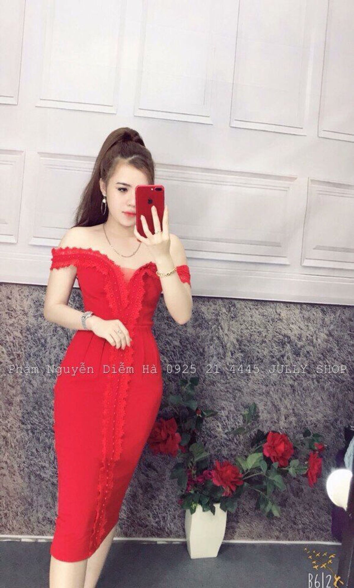 Váy body trễ vai đính hoa cườm -> có hình ảnh thật kèm theo của Bảo Ny