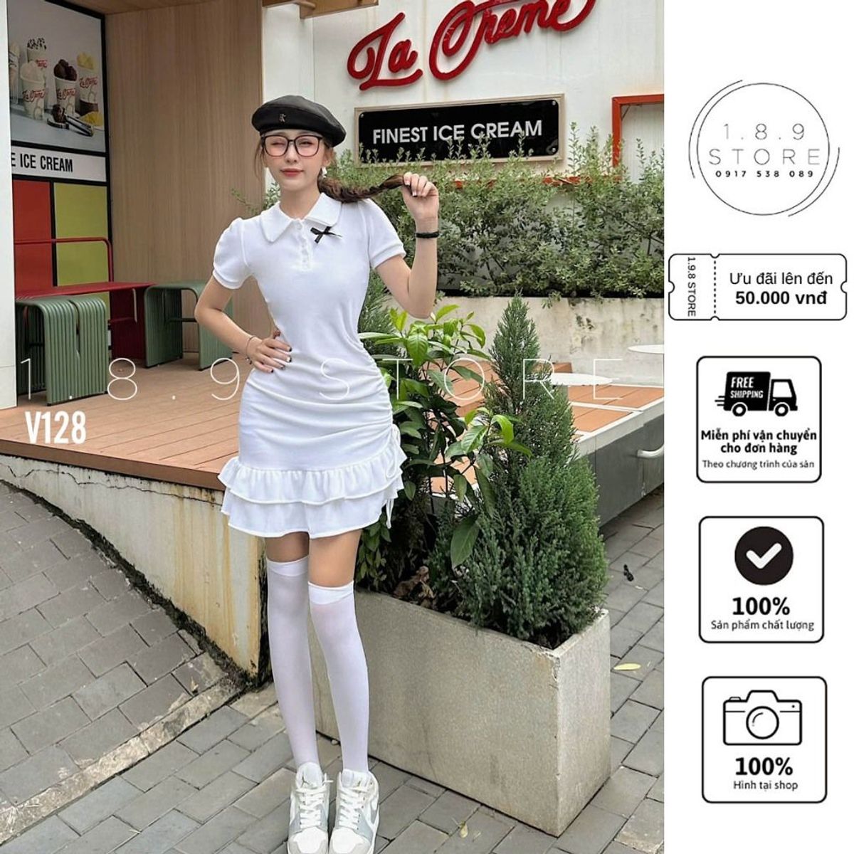 Váy cổ đức họa tiết nơ ôm chân váy bèo 2 tầng nhún eo TA cho các nàng thơ đi chơi