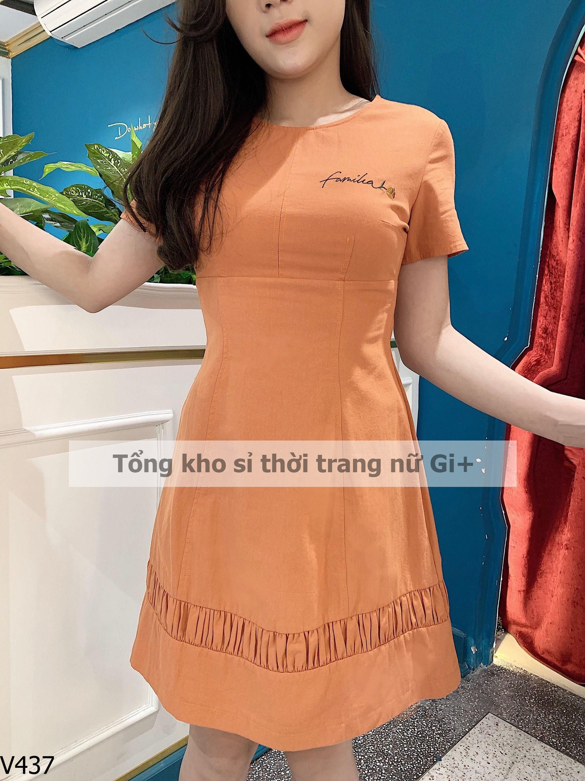 Tên sản phẩm : Váy cổ tròn dáng A nhún gấu thêu ngực - V437