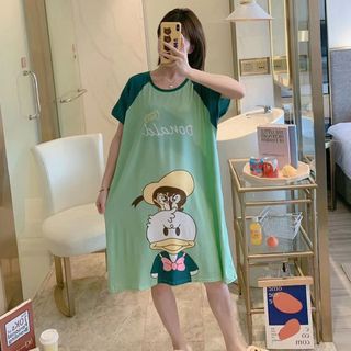 Váy đầm xuông mặc đi ngủ in hoạt hình cute dễ thương chất liệu cotton form bigsize mặc nhà mùa hè VS01