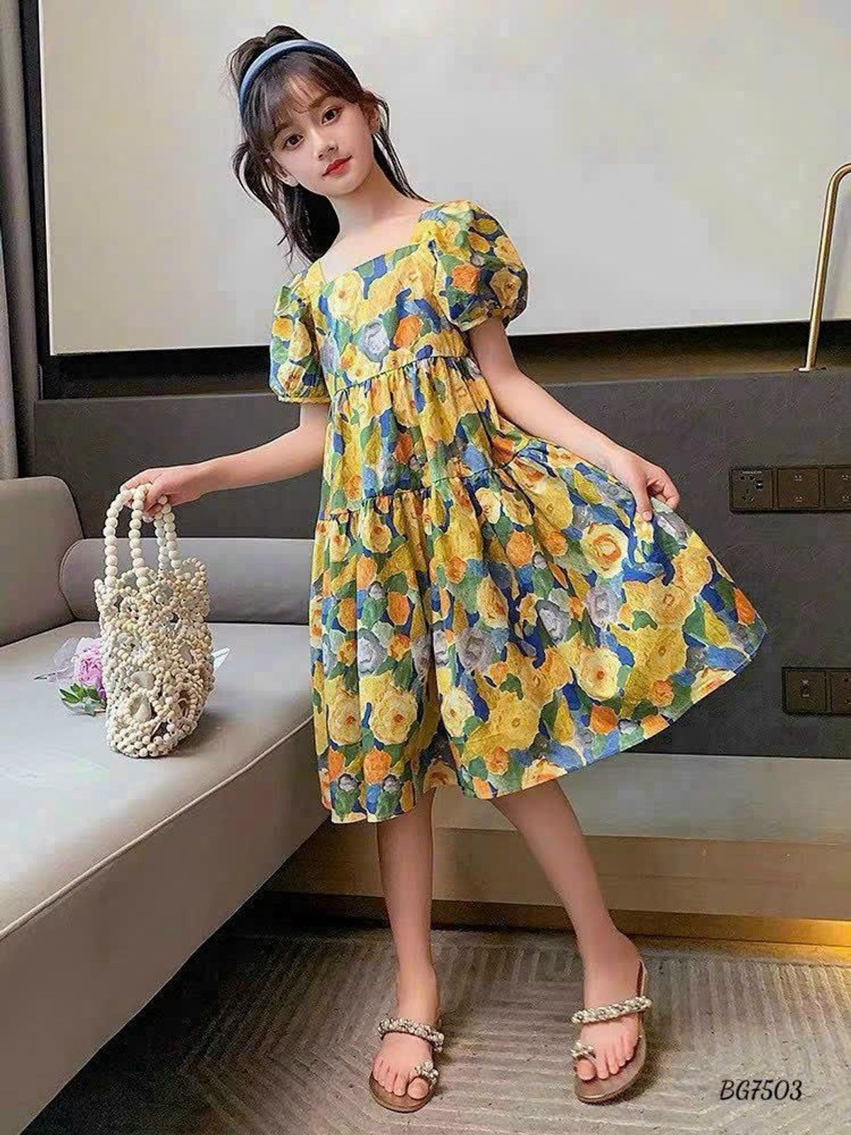 Váy hoa bé gái mùa hè 100% lụa mango cao cấp, mềm mại, Đầm kiểu bé gái tay ngắn dáng xòe- VAY1