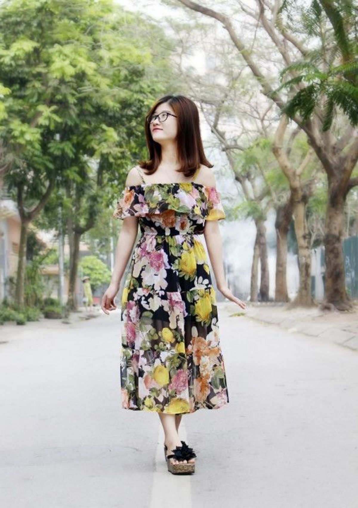 váy maxi voan hoa kiểu dáng thiết kế bắt mắt màu sắc tươi sáng trẻ trung, phù hợp cả với hững người không sở hữu chiều cao lý tưởng, vai bèo bồng bềnh duyên dáng, đường may kĩ