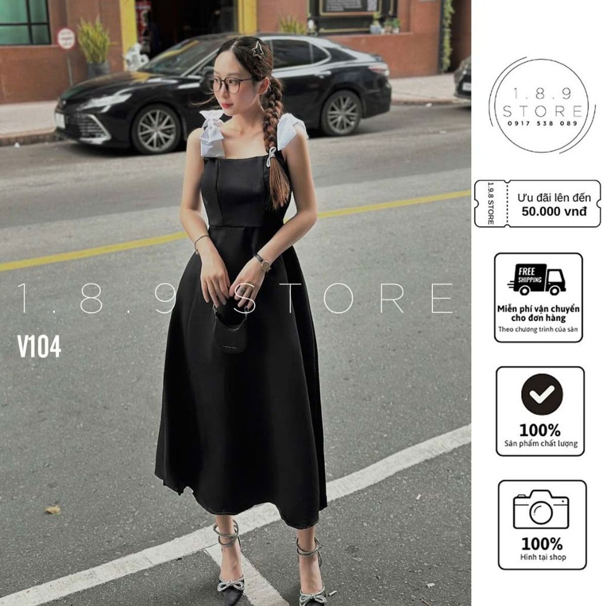 Váy Nữ Hàng Thiết Kế Dự Tiệc Màu Đen Trắng Không Tay Thân Xòe Chất Liệu Tuyết Mưa Cao Cấp