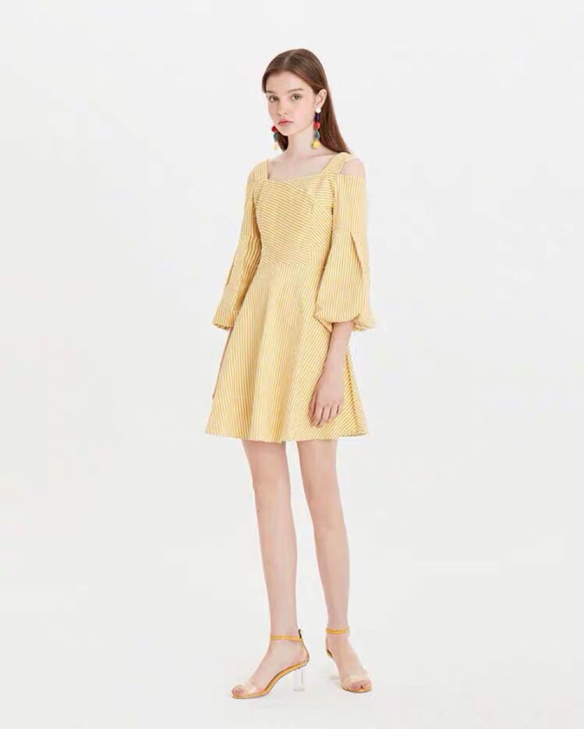 Váy sọc vàng xoè tay bồng Quảng Châu giá sỉ - giá bán buôn