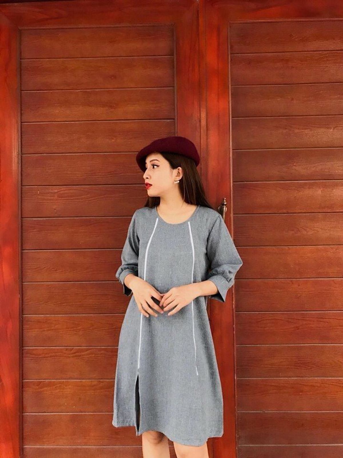 Váy suông xám viền trắng giá sỉ - giá bán buôn