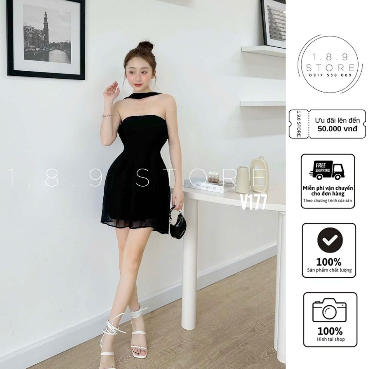 Váy tiểu thư dáng xòe hở vai phối chéo siêu tôn dáng cho cac nang tho di cafe