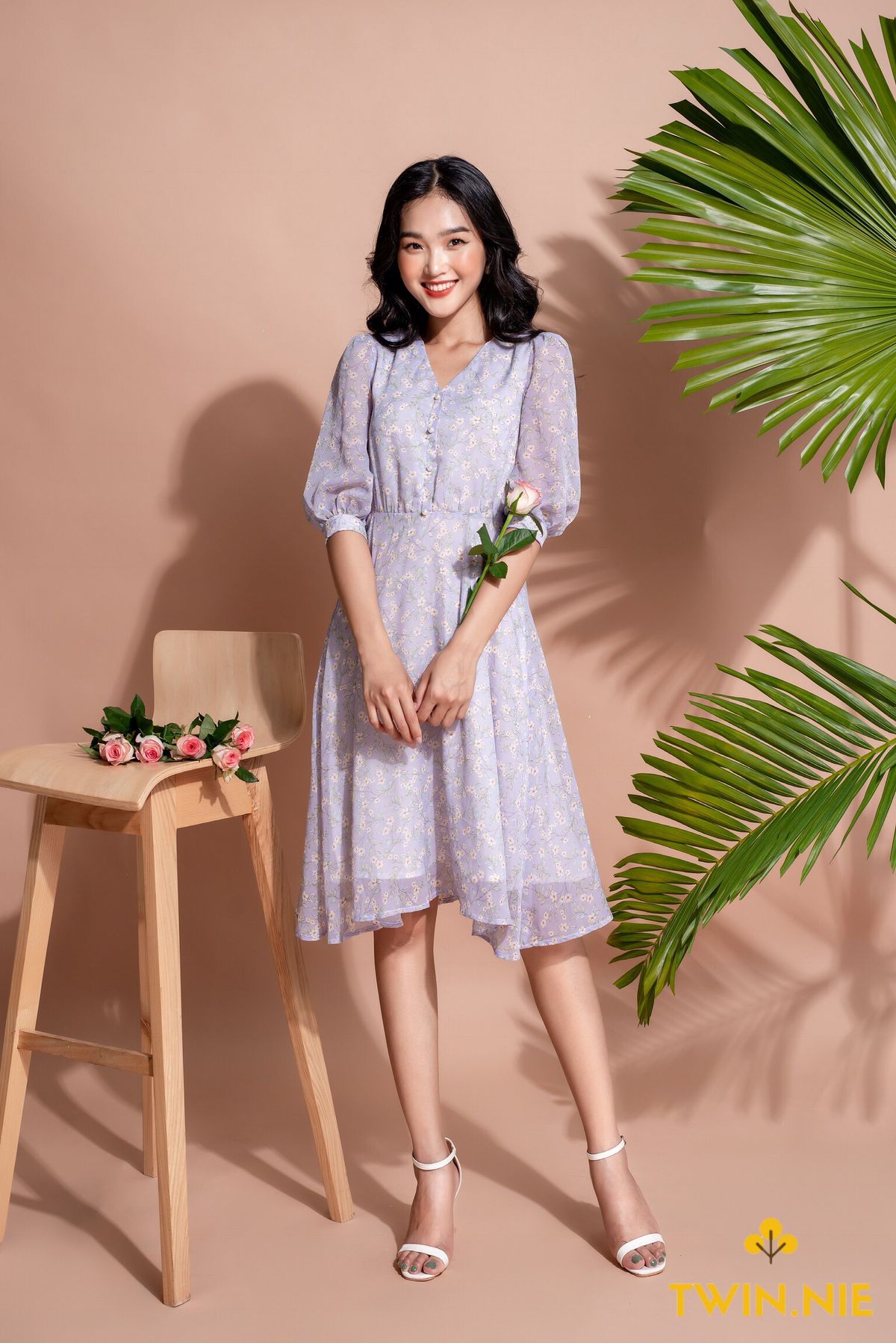 Váy tơ xanh tím Thiết kế giá sỉ/bán buôn