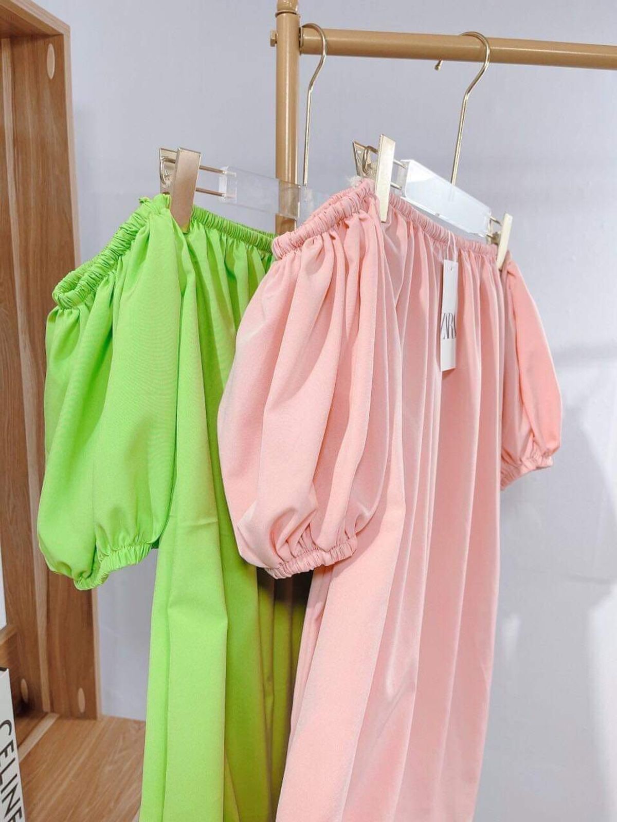 Váy trễ vai tay bồng xoè mặc được nhiều kiểu cực xinh về 2 gam màu hot trend sll