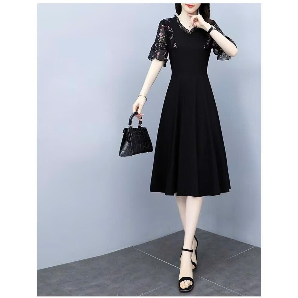 - Chất liệu: lụa mango co giãn nhẹ, phối voan hoa mềm mại