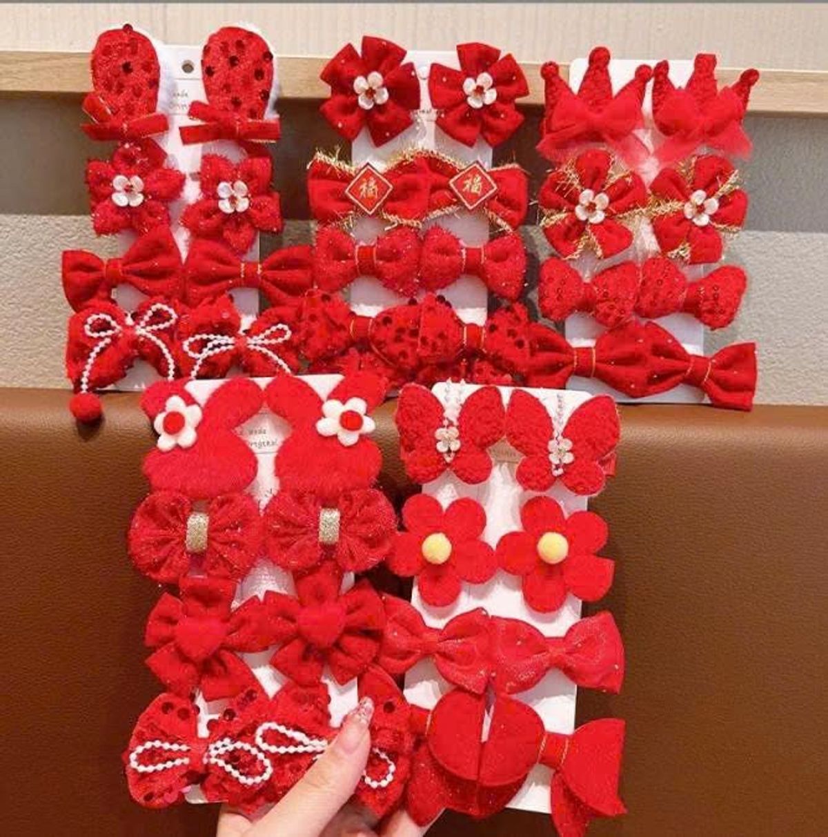 VĨ 8 KẸP TÓC ĐỎ NHỒI BÔNG KIM TUYẾN giá sỉ/bán buôn