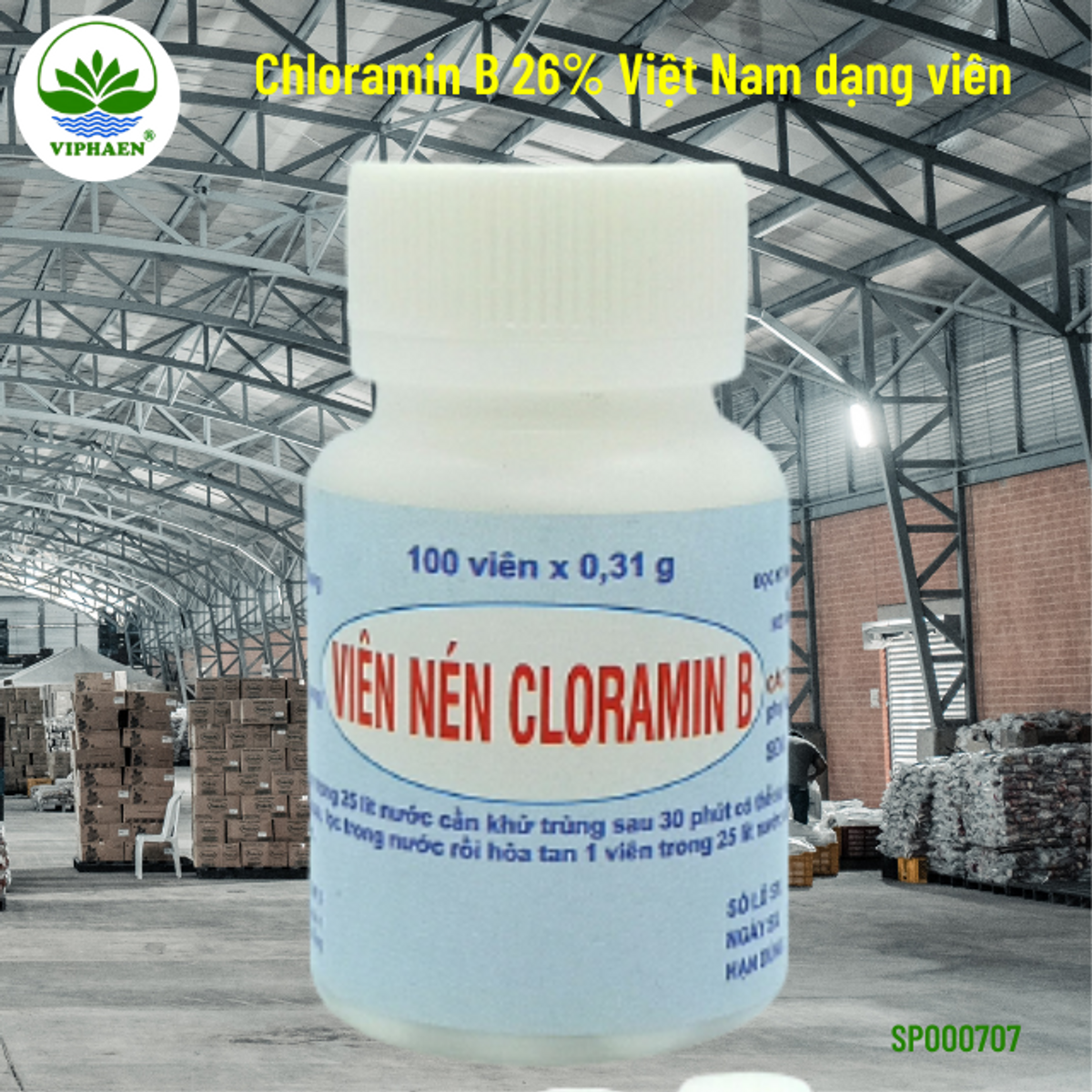 Hàm lượng: 250 mg Cloramin B 26% Clo hoạt tính, tá dược vừa đủ