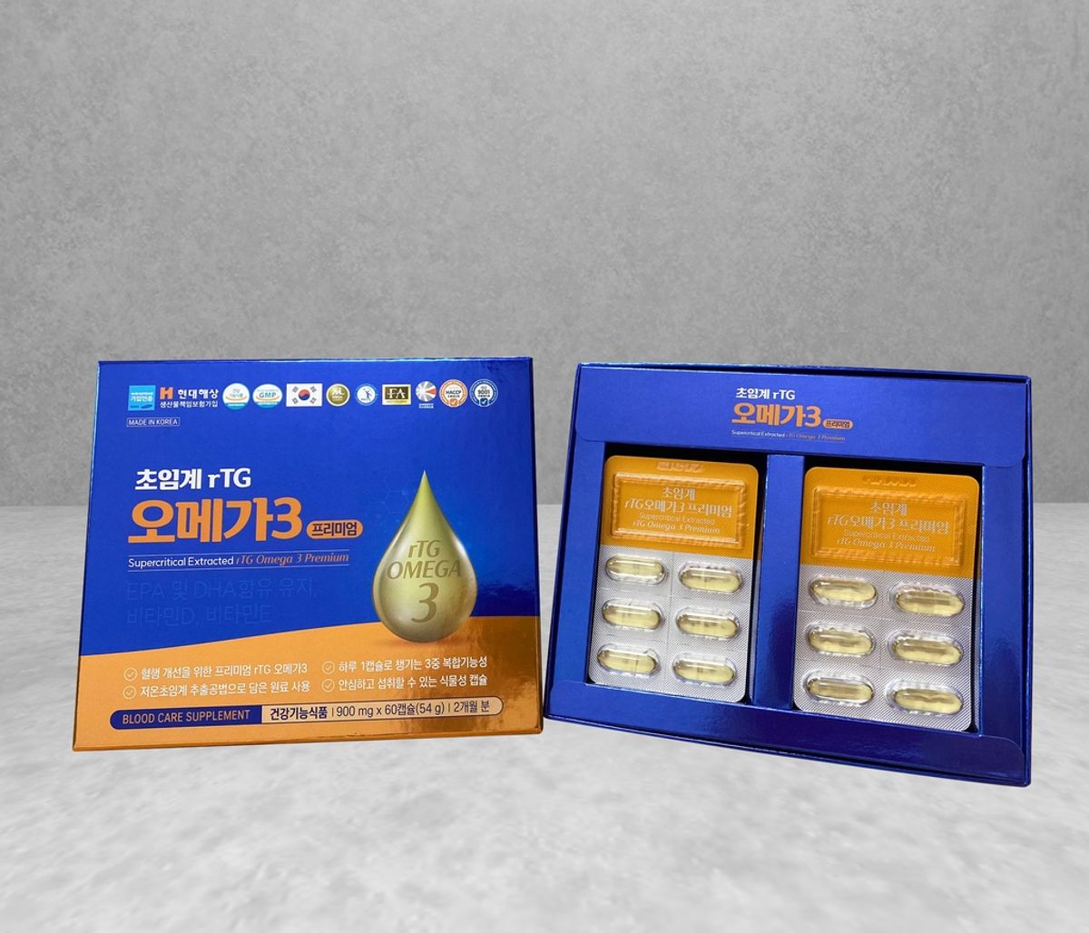 Sản phẩm được nhắc đến thường là loại Viên Omega 3 tuần hoàn máu Supercritical Extracted rTG Omega 3 Premium xuất xứ từ Hàn Quốc.