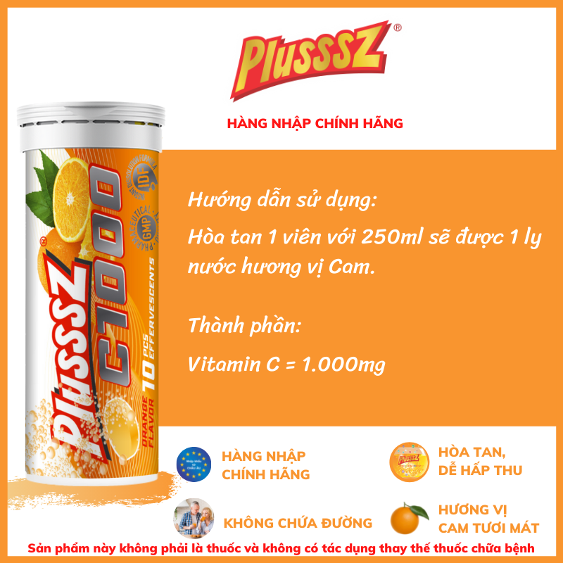 1. SẢN PHẨM VIÊN SỦI PLUSSSZ VITAMIN C 1000MG VỊ CAM KHÔNG ĐƯỜNG (TUÝP 10 VIÊN SỦI 4G)