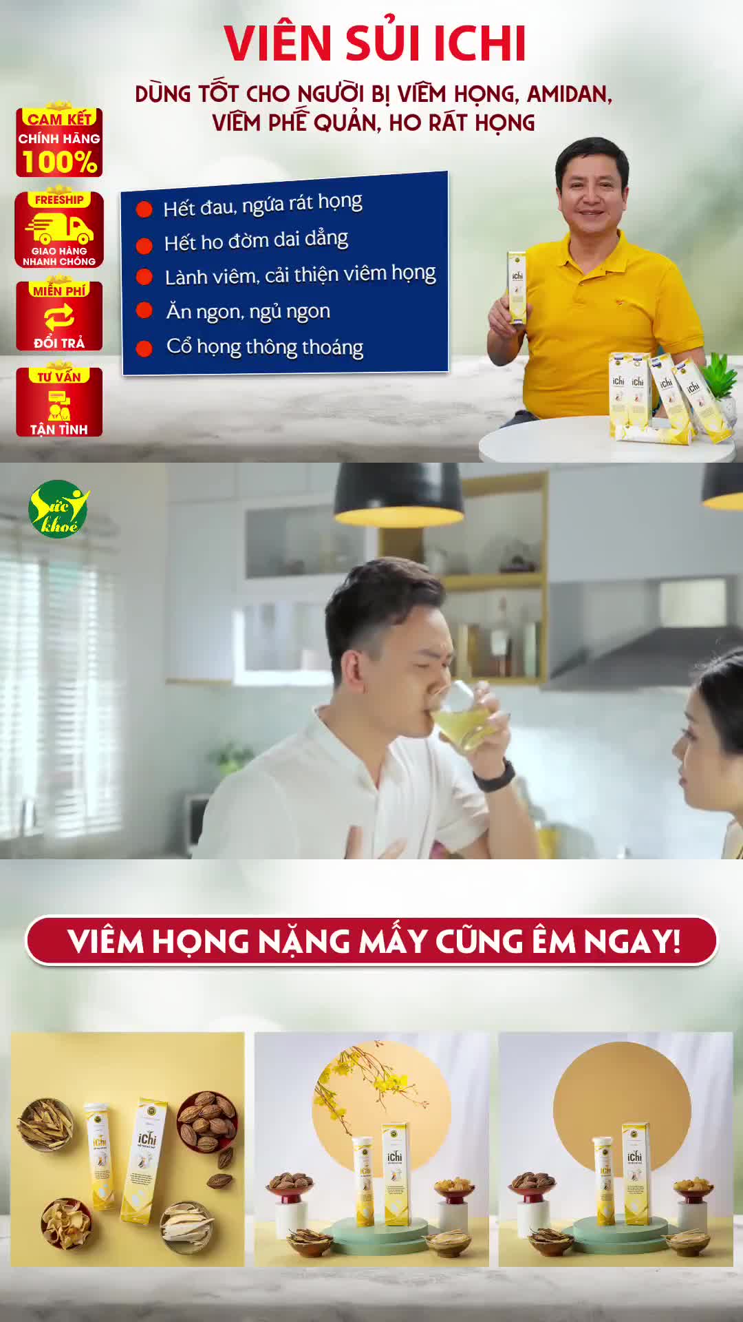 Viên sủi Ichi giúp giảm viêm họng, làm dịu cổ họng, và giảm ho hiệu quả nhờ vào công thức thảo dược kết hợp mật ong, gừng, và cam thảo. Sản phẩm giúp bảo vệ hệ hô hấp khỏi các tác nhân gây hại, đồng thời tăng cường sức đề kháng cho cơ thể. Viên sủi là giải pháp hoàn hảo để hỗ trợ điều trị viêm họng, mang lại cảm giác dễ chịu, thư giãn cho cổ họng khi bị viêm hay ho kéo dài.