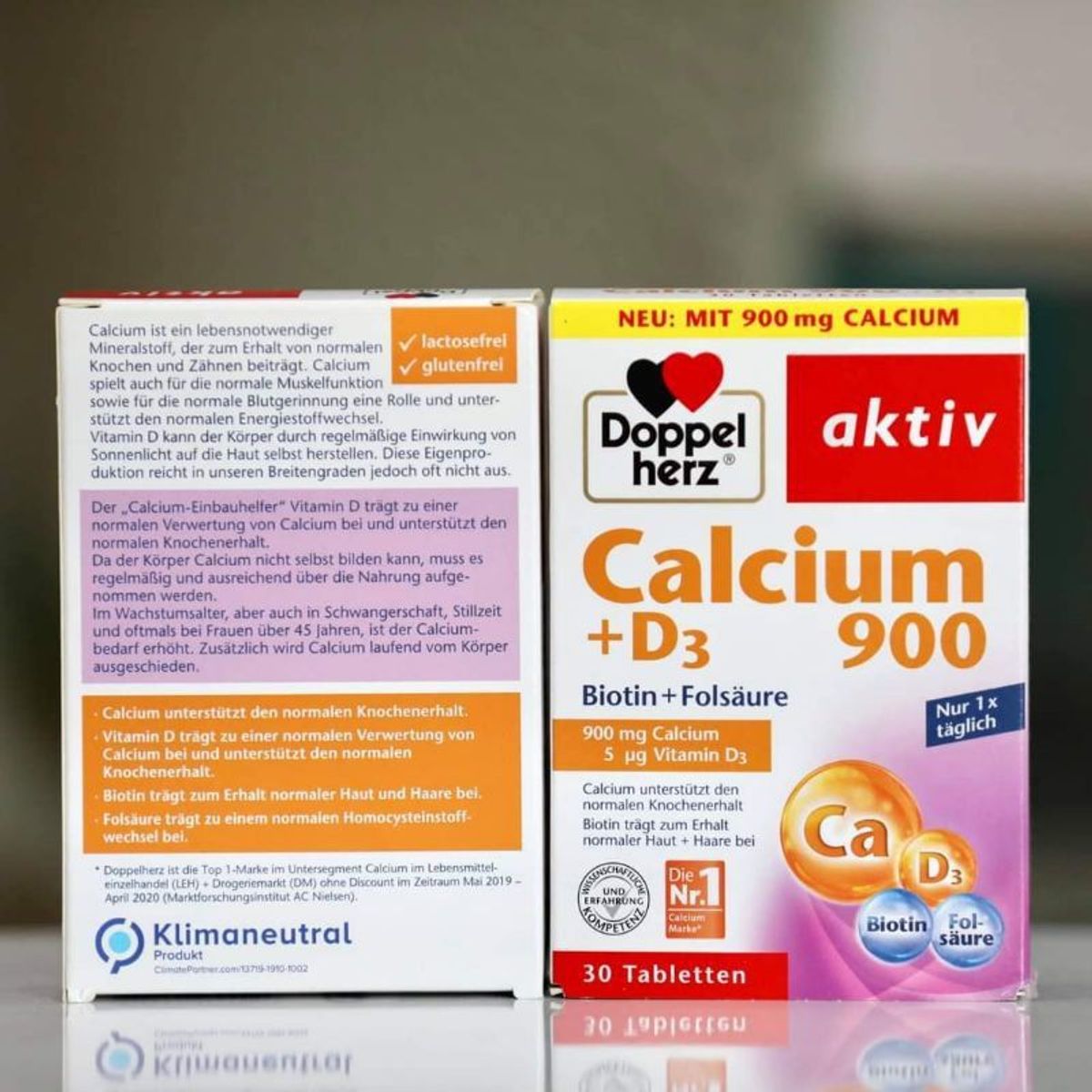 Doppelherz calcium D3 900 với 900mg canxi cộng với biotin + vitamin D trong mỗi viên thuốc!