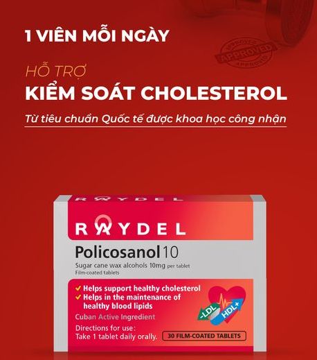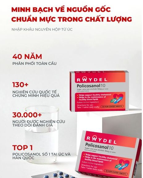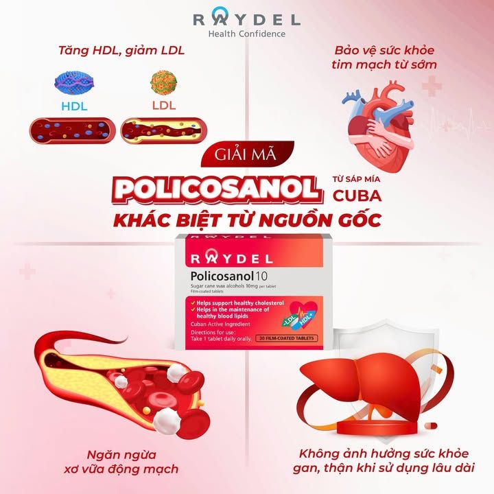 Nâng cao sức khỏe tim mạch của bạn với Raydel-Policosanol 10mg! Có hơn 130 nghiên cứu lâm sàng quốc tế, nghiên cứu theo dõi trên 30.000 người, chứng minh hiệu quả: